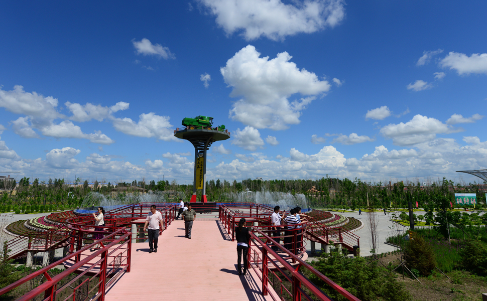 今年,友谊农场制定了以“一心七区”为核心内容的旅游发展规划,围绕现代农业机械展示、满源文化寻根、生态农业游览、知青文化教育等特色旅游,设计了7条旅游线路,充分体现了文化与城镇合一、城镇与特色旅游项目互动、和谐发展的新格局。图为游人在国家AAAA级景区北大荒农机博览园游览。张保军 赵健东摄