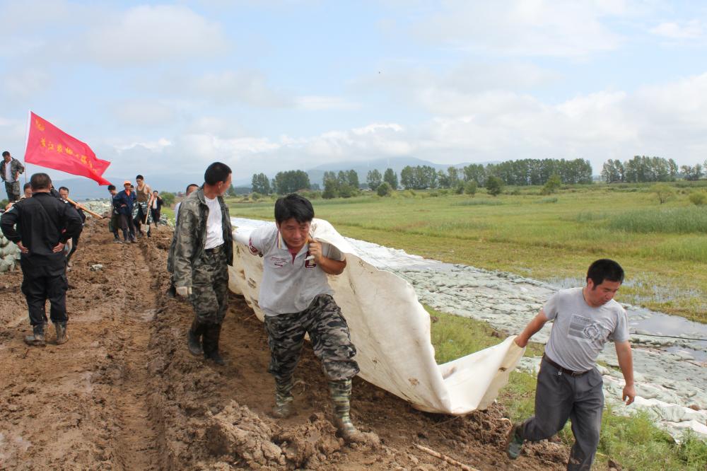 东北网8月20日讯 连日来,浓江农场平均每天大约组织200余人的抗洪抢险队坚持奋战在青龙山农场莲花河抗洪救灾。