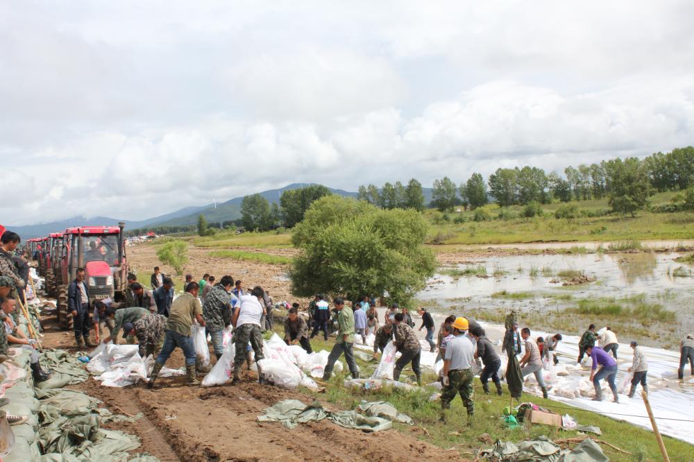 受黑龙江流域强降雨影响,莲花河一带地区水位不断上涨,已超过警戒线1.5米以上,汛情十分严峻,农场组织党员干部奔赴莲花河抗洪救灾,农场领导、机关、场直、管理区干部率先上阵、冲锋在前,他们扛着沙袋双脚在泥水中前行奋力强行,就这样几个小时下来他们身上沾满了泥泞,手也被磨起了水泡、肩膀也被沙袋磨破、腿也肿了、他们的脸被太阳和雨水刺激的红肿可是你在他们的脸上你依然能看到的的是那坚定不移克服一切困难的坚定表情,他们依然冲锋在前抗洪队伍的最前面,对所负责区域内的防洪堤坝加高、加固,确保职工群众的生命财产安全。
