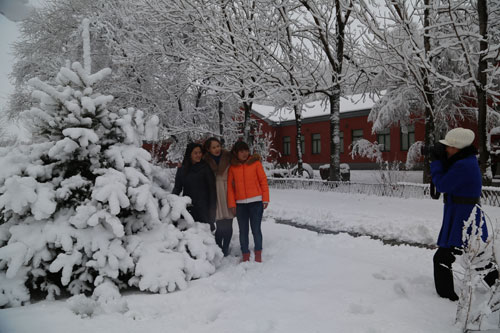 11月25日,又一场大雪普降,八五七农场被银色的世界紧紧包围。晶莹剔透的树挂凝结成透明的水晶花,分外妖娆,也使这座“艺术之城”更加美丽诱人。零下几度的气温阻挡不住人们的热情,他们纷纷走出家门,在这红墙、白瓦中嬉戏玩耍、拍照留念,在雪后的纯净世界里享受着银色的浪漫,诉说着幸福生活的源泉。