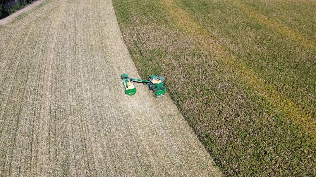 近日,在北大荒农业股份新华分公司青山管理区玉米种植区内,大型联合收割机正沿着流畅的“弧线”轨迹在田间穿梭作业,与传统直垄收割形成鲜明对比。金黄的玉米籽粒从收割机中倾泻而出,直接装入等候的运输车辆,在黑土地上勾勒出一幅科技与丰收交织的秋日画卷。